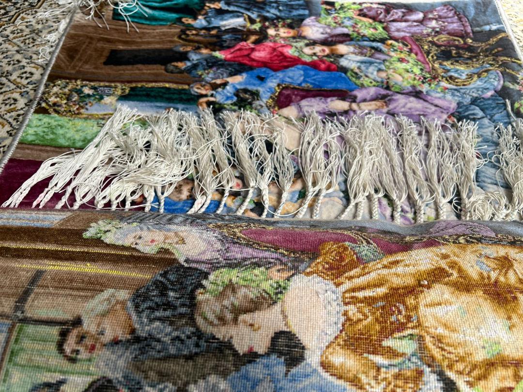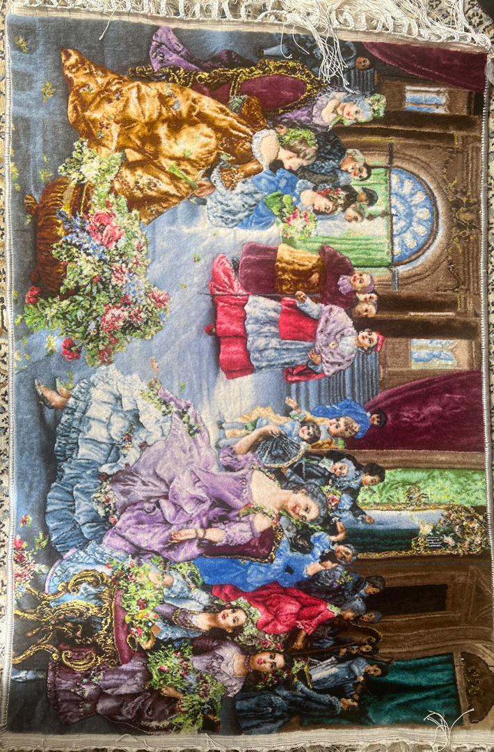 این اثر بازآفرینی هنرمندانهای از یکی از صحنههای مشهور در دنیای هنر غرب است که در آن، شخصیتهای برجسته کلیسا در فضایی مجلل، در حال ضیافت هستند. بازی نور و سایه، حالات چهرهها و جزئیات لباسها، به طرز شگفتانگیزی در تار و پود این تابلو فرش جا گرفتهاند. این طرح، نهتنها یک تصویر است، بلکه قصهای است از قدرت، اعتقاد و شکوه گذشته.